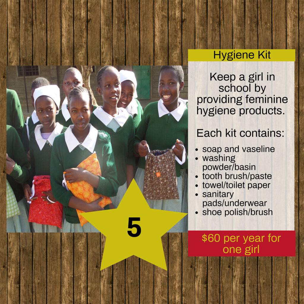 Keep a girl in school by providing feminine hygiene products.